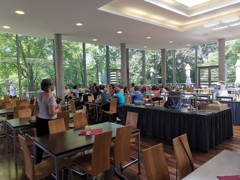 ... Mittagsbuffet mit grandioser Aussicht in den Park.