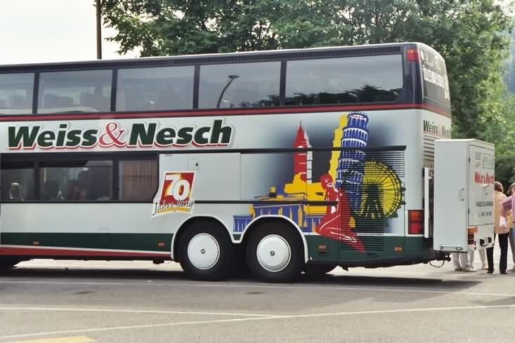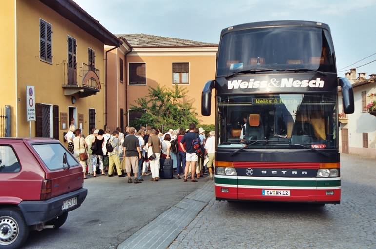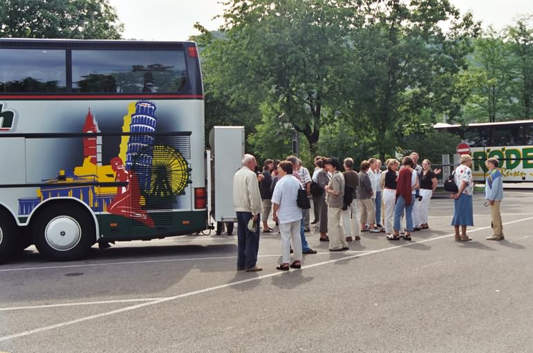 Der Weiss & Nesch - Bus macht uns mit dem Schiefen Turm schon