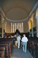 Vor der Kirche und nach dem Gottesdienst im gegenüber-liegenden