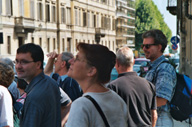 Die meisten nehmen an einer Stadtführung teil.