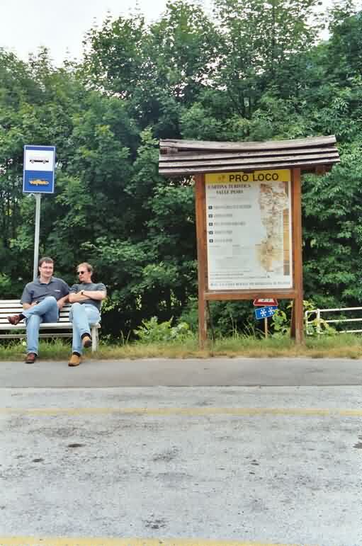 Unsere beiden Solo-Trompeter warten hier schon auf den Bus, mit