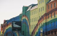 Direkt gegenüber findet sich die Firma Rosenthal mit Regenbogenfassade.