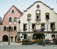 Auffallend sind die sehr bunten Läden und Fassaden.