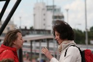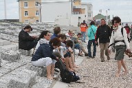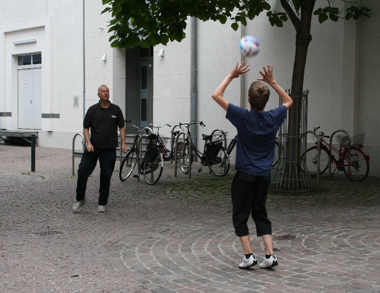 Kantor und Sohn vertrieben sich die Zeit bis zum Stadtrundgang