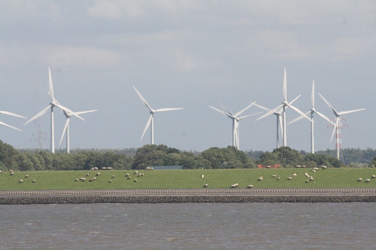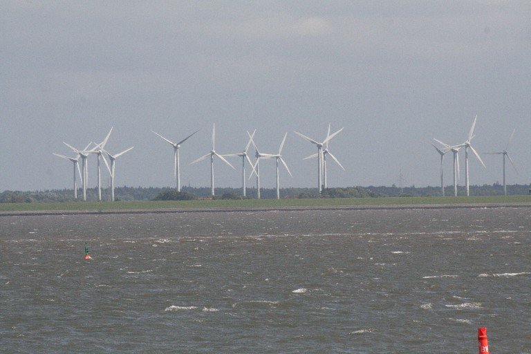 ... vorbei an Windkraftanlagen in Richtung Norddeich.