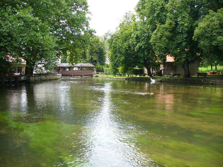 Das Wasser fließt in ein Flüsschen ab und ergießt