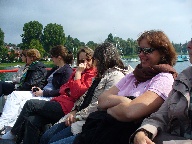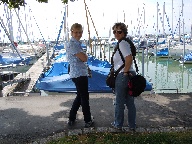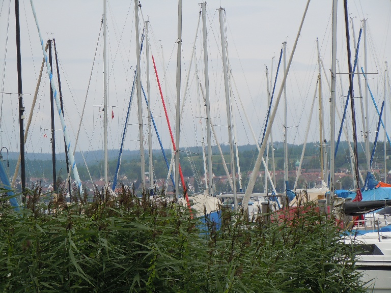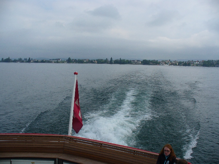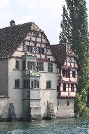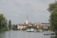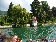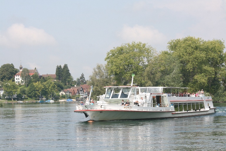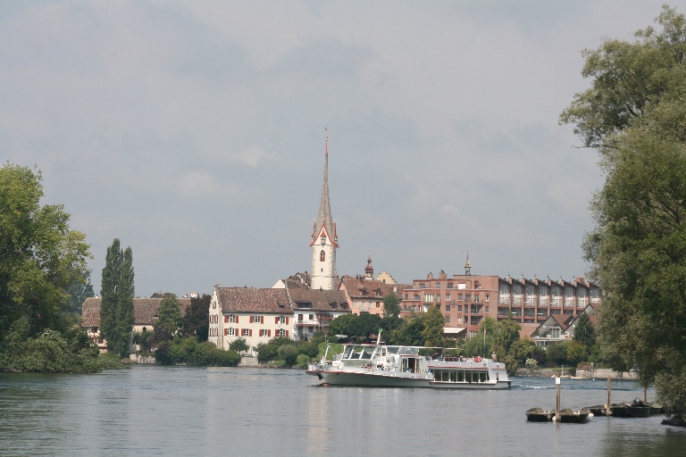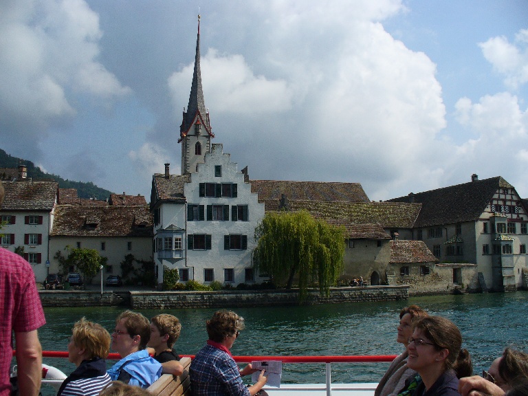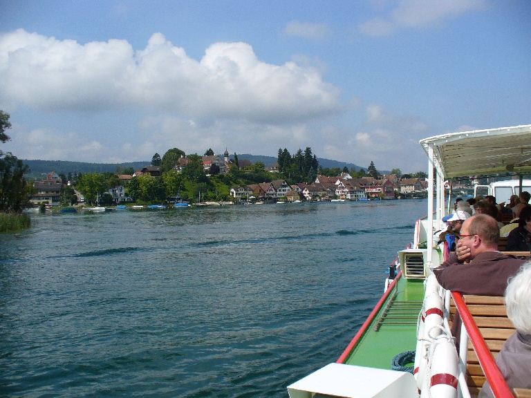 ... im Spiegel auf unsere Fähre nach Stein am Rhein warten.