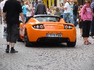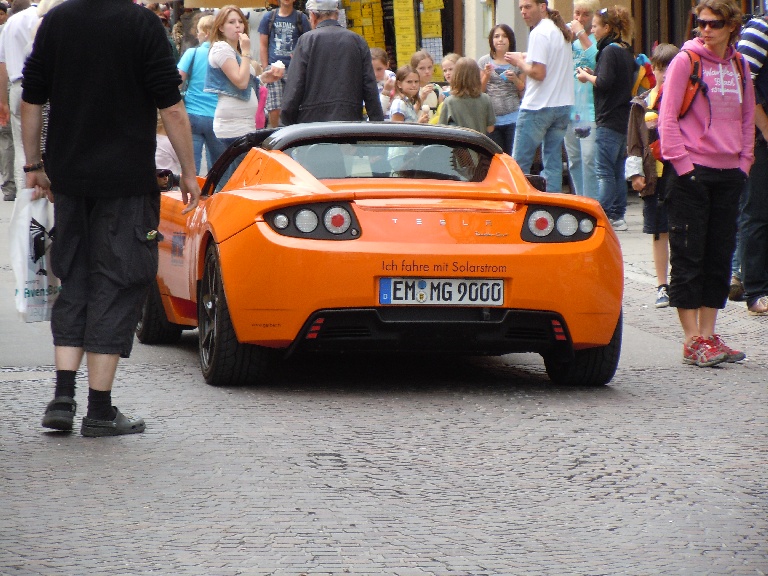 Wieder unten in der Stadt sah man einen Elektro-Roadster Tesla