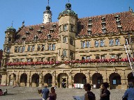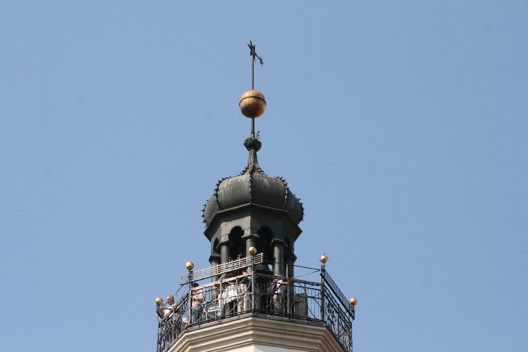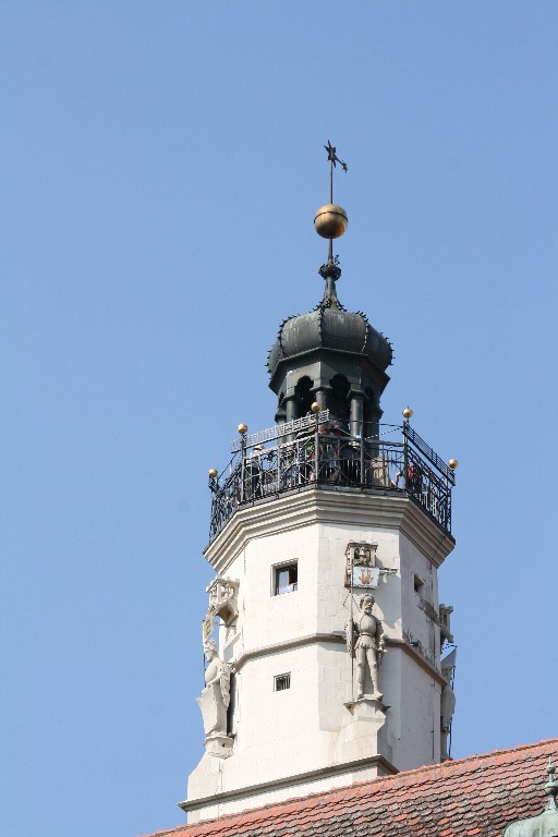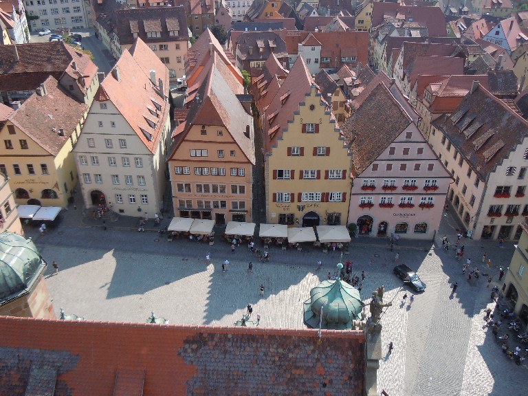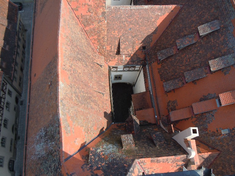 ... auf den Marktplatz, auf die Dächer der Stadt, ...