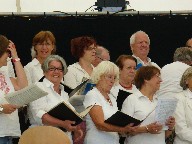 Am Sonntagvormittag wirkten wir im Gottesdienst auf der Landesgartenschau-Bühne