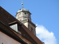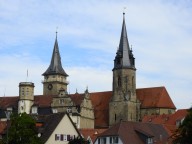 auf die Stiftskirche mit Blasturm und Läutturm ...