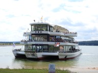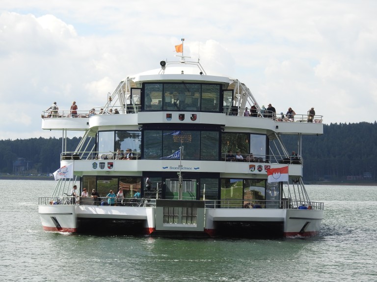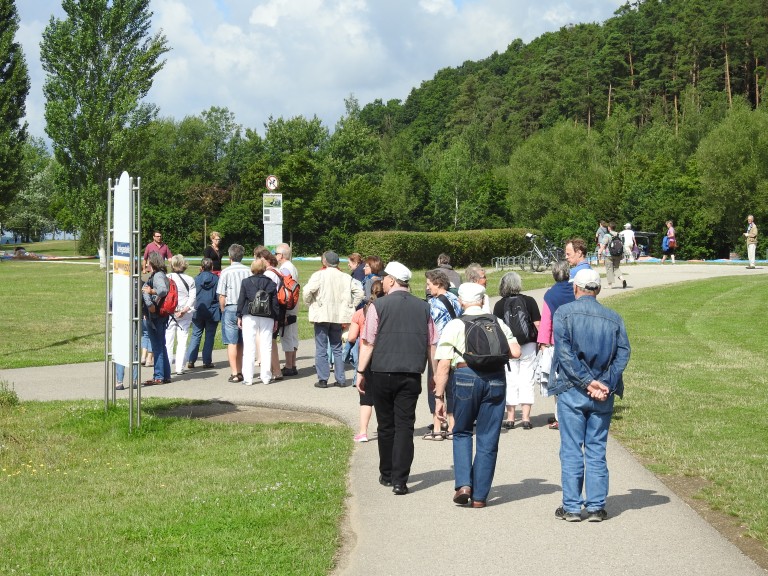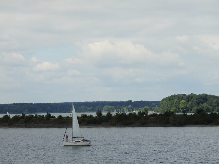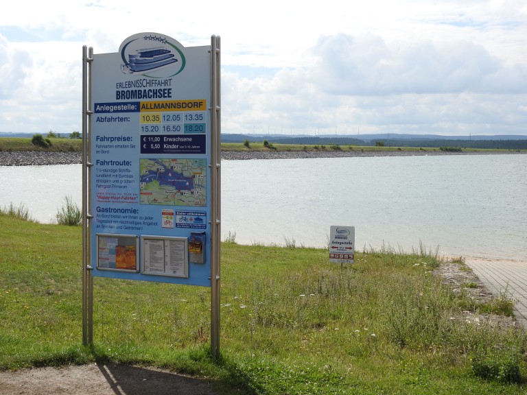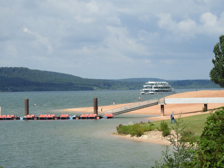 Am anderen Ende des Sees sehen wir die Staumauer zum Kleinen Brombachsee