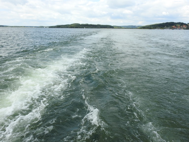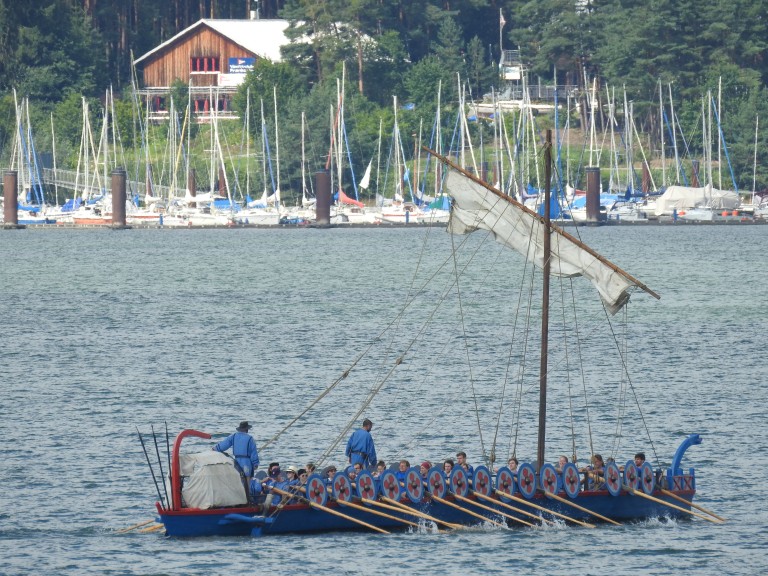 Auf dem See begegnet uns die Galeere MG Acatus, die für Team-Events