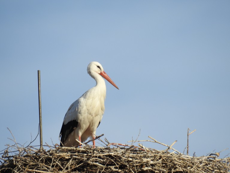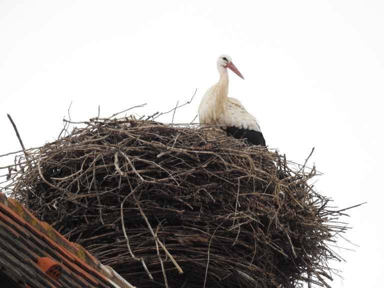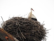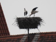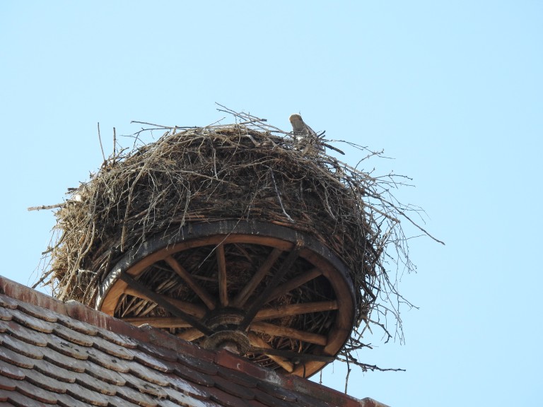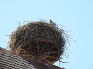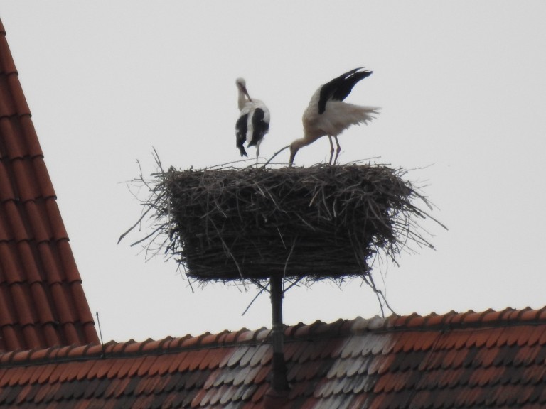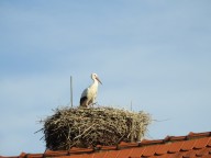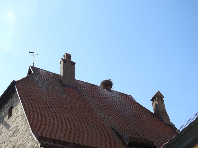 ... und sehen gleich danach auf dem Alt-Rathausdach das erste Storchennest,
