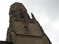 ... Hallenkirche mit dem 62 m hohen Westturm.