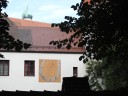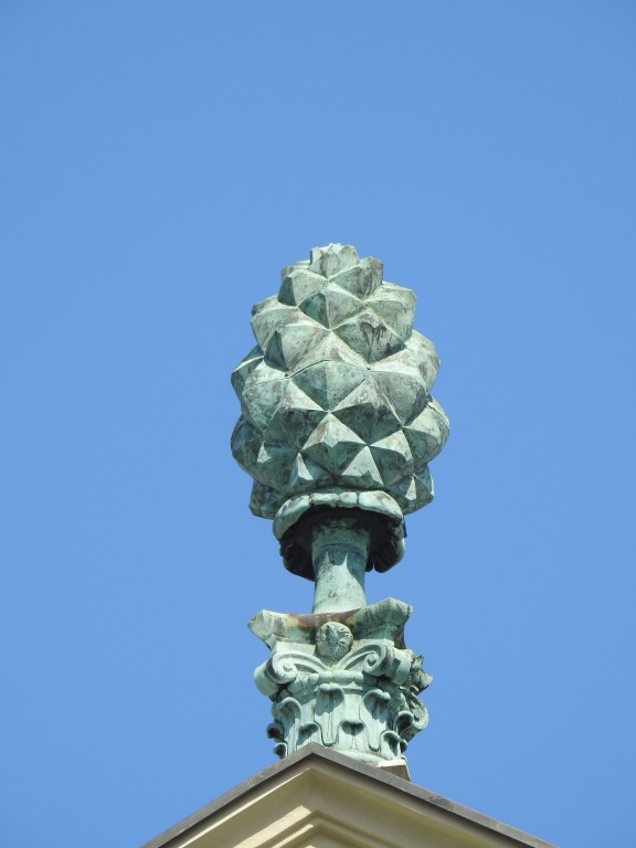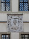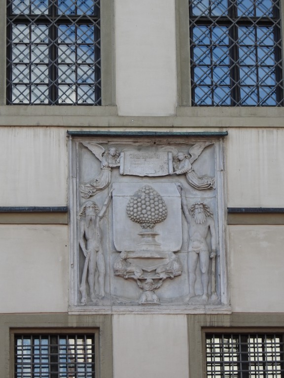 Auch an der Rathaus-Rückwand ist der 'Pinienzapfen' zu sehen.