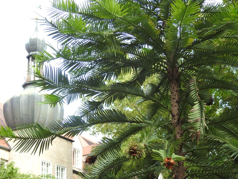 Neben vielen Kräutern gibt es hier eine stattliche Wollemie,