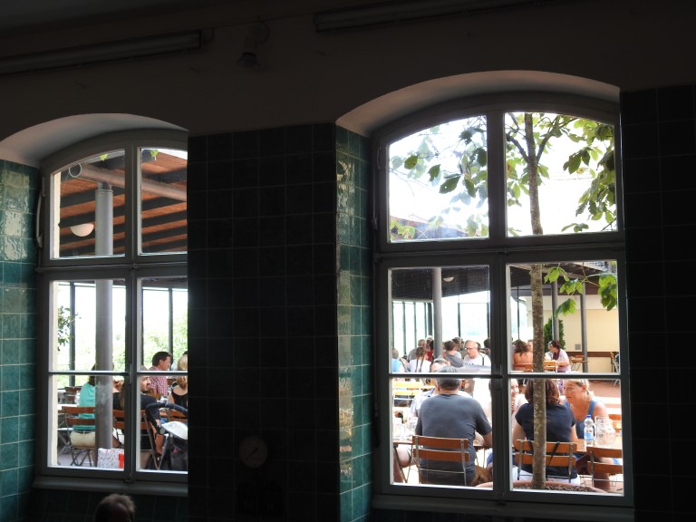 Nach dem Abendessen in der Kälberhalle des Schlachthof Quartiers