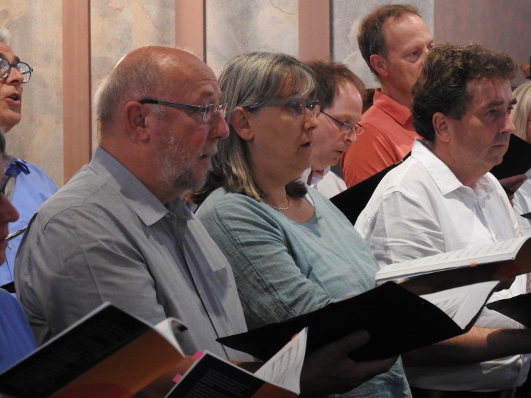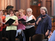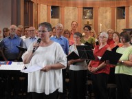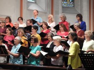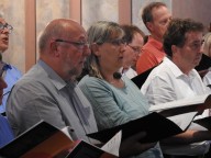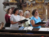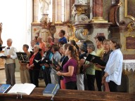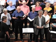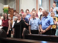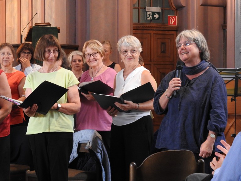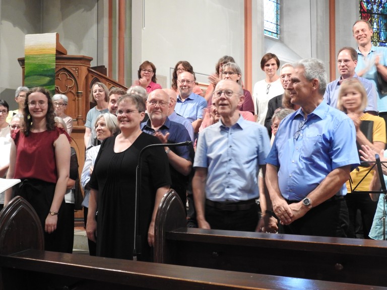 Eva und die Solisten genießen mit dem Chor den Applaus, ...